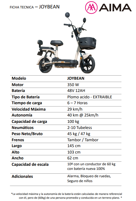 BICIMOTO ELECTRICA AIMA JOYBEAN