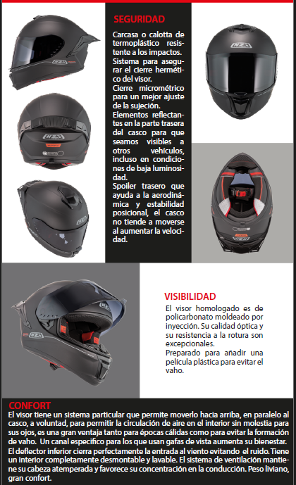 estable, reduce la fatiga cervical y el impacto del viento. Incorpora spoiler y