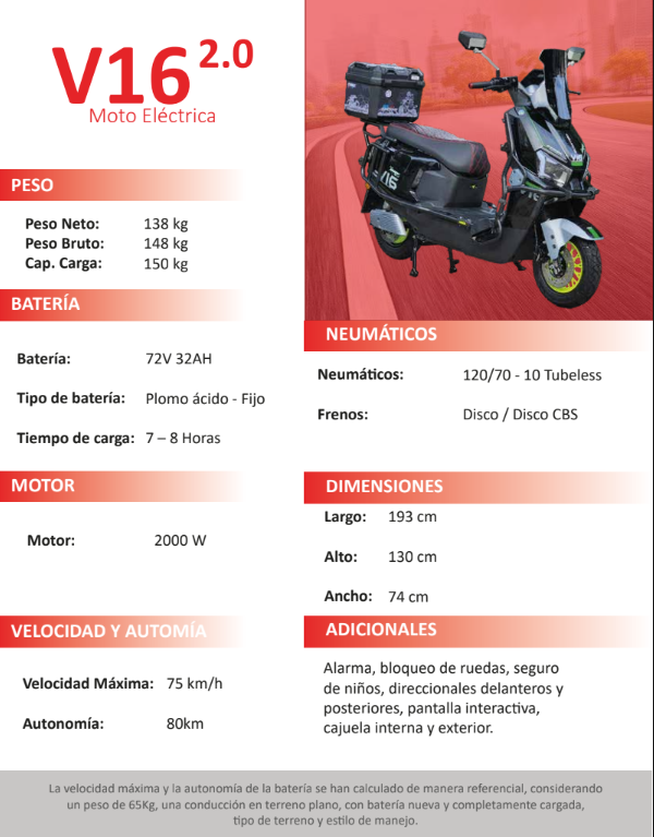 MOTO ELECTRICA V16 2.0 MOTO ELECTRICA
