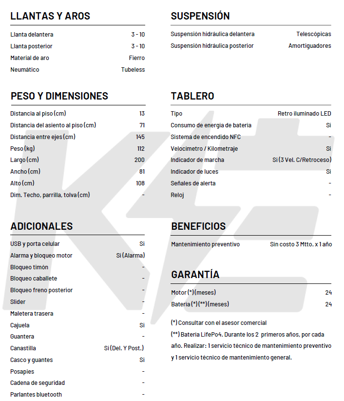 *Batería: LITIO EXTRAÌBLE LIFEPO4 de 48V/ 24 AH ( Tiempo de vida de esta batería es de más de 5 años y cuenta con 2 años de GARANTIA en BATERIA)